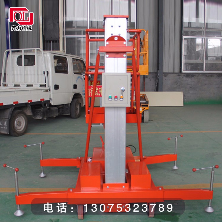 機(jī)身底座設(shè)有活動輔助輪,提供良好的拐彎性能,以及輕易跨越一般的地面障礙,單桅桿機(jī)種設(shè)有貨車裝卸輔助裝置,可雙人進(jìn)行裝卸。鏈條負(fù)荷**系統(tǒng)10倍,并設(shè)有鋼絲**保護(hù)裝置,確保升降順暢。