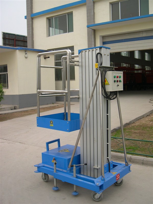 本產(chǎn)品為鋁合金輕便單人系列高空作業(yè)平臺,液壓升降,安全可靠,工作高度可達(dá)12米,載重150KG,采用插裝支腿,并于智能電控互鎖,確保安全。升降臺體積小,重量輕,移動特別靈活方便,可以非常容易地通過普通房道及電梯門。各項(xiàng)性能指標(biāo)符合歐洲標(biāo)準(zhǔn)。單桅柱系列機(jī)型可以制造成伸縮式,平臺延伸0.6米,方便解決了離目標(biāo)物過遠(yuǎn)的問題。