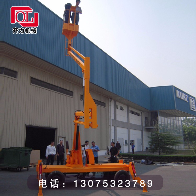 拖車曲臂式升降機(jī):可以掛在汽車上,與汽車同步,適合野外高空作業(yè)。升降方式:1、用380-220V電源2、用電源不方便,可以用電瓶驅(qū)動(dòng)升降。外型美觀,行走方便。
