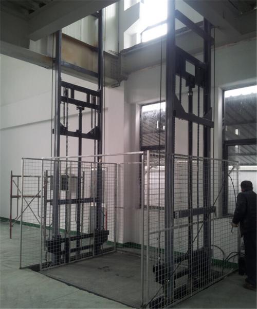 升降平臺在具備傳統(tǒng)曳引式電梯的**裝置的同時, 還設(shè)有:溢流閥:可防止上行運動時系統(tǒng)壓力過高,應急手動閥:電源發(fā)生故障時, 可使轎廂應急下降到*近的層樓位置開門, 手動泵:當系統(tǒng)發(fā)生故障時, 可操縱手動泵打出高壓油使轎廂上升到*近的層樓位置; 管路破裂閥:當液壓系統(tǒng)管路破裂轎廂失速下降時, 可自動切斷油路停止下降。油箱油溫保護:當油箱中油溫超過標準設(shè)定值時, 油溫保護裝置發(fā)生信號, 暫停電梯使用, 當油溫下降后方可啟動電梯