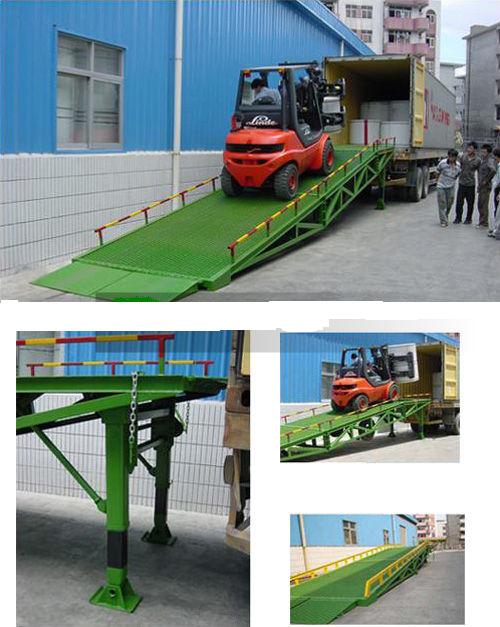 本產(chǎn)品是與叉車配合使用的貨物裝卸專用輔助設備。有了它,叉車能直接從地面駛?cè)肫囓噹麅?nèi)部進行批量裝卸作業(yè)。產(chǎn)品采用人工液壓動力,不需接動力電源。只需單人操作,即可實現(xiàn)貨物的**快速裝卸。它可使企業(yè)減少大量勞動力,成倍提高裝卸作業(yè)效率,加快貨物流通速度,獲取更大經(jīng)濟效益。
